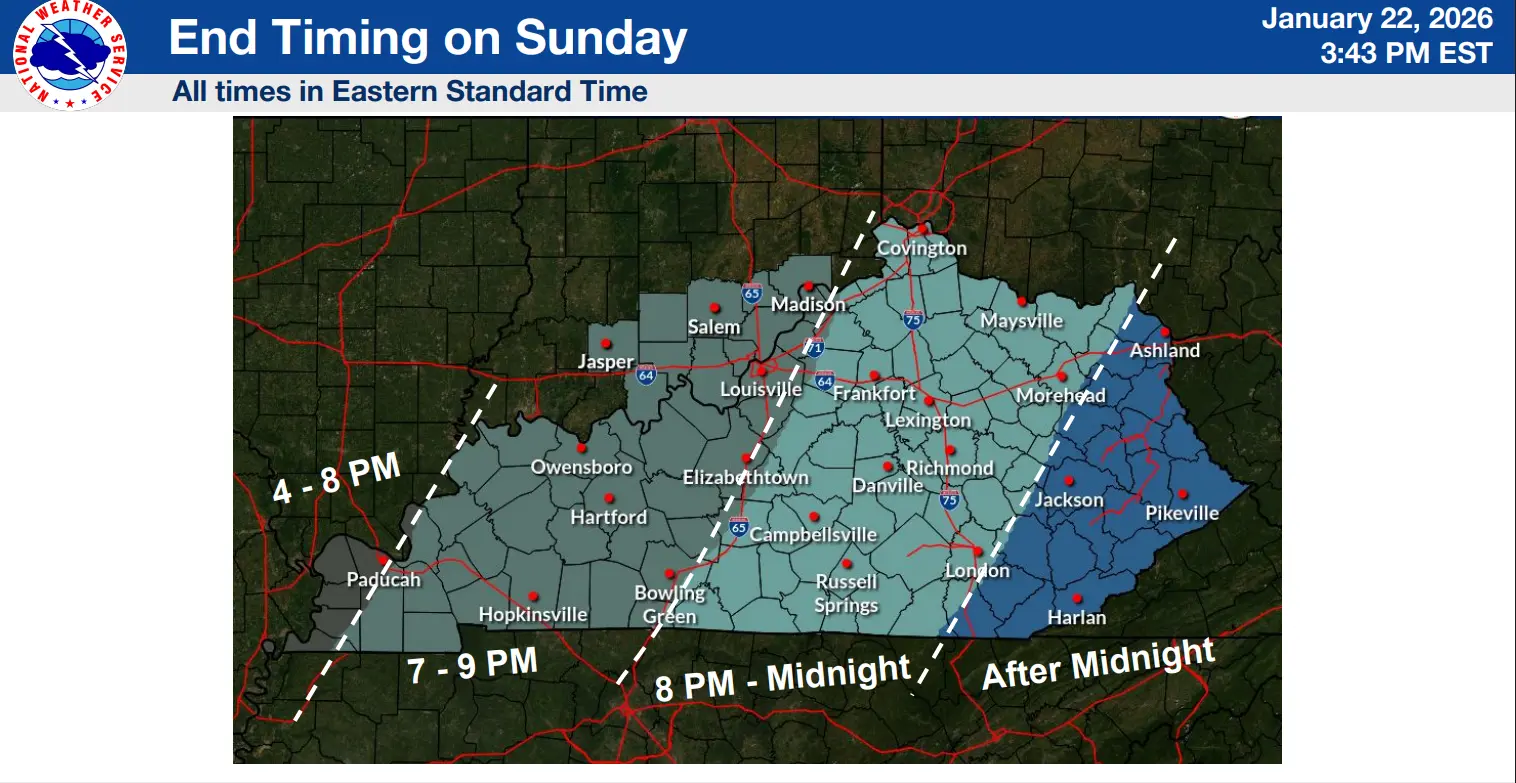 Storm timing: Mid to late morning (6 A – 10 A) Saturday (1/24) until Sunday evening (7-10P).